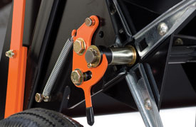 The Agri-Fab base is the foundation of the SmartLINK™ lawn-care system. It’s robust and highly durable, with a welded drawbar and durable heavy-gauge steel deck to ensure a lengthy service-life. It runs on a pair of pneumatic tyres, so rolls smoothly over rough ground; and has a weight tray which can be loaded should added pressure be required when aerating or dethatching. Switch from one lawn implement to another, in seconds, without using any tools