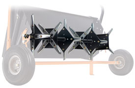 The tractor-towed core aerator penetrates far more deeply than a surface aerator, ensuring water, air and nutrients reach the whole roost system across its large 104cm/41” working-width whilst helping with surface drainage. The 20 aeration knives are rust-proof for longevity and the deck is made of heavy gauge steel. The core aerator is fitted to the master platform via a simple locking mechanism.