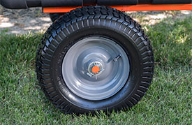 Wheel15" x 6" turf tread pneumatic tyres roll for easy manoevrability over any terrain. |
