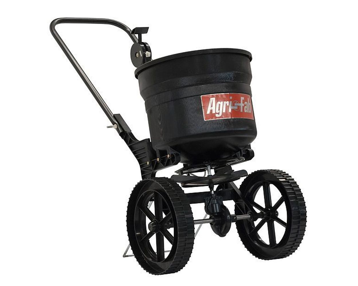 Increased manoeuvrability is provided by the durable 10" poly wheels. Complete with easy to read on/off and seed setting control, the Agri-Fab 45-0566 spreader has an enclosed gearbox which reduces maintenance and prolongs product life.