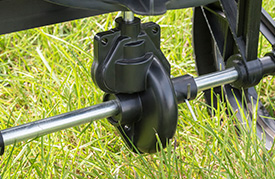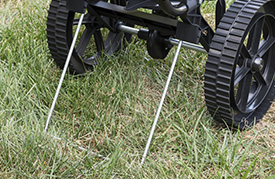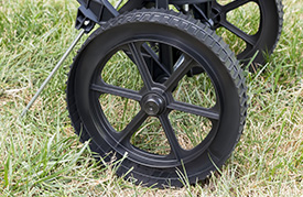 Wheel10" poly wheels move over terrain easily and never need air. |