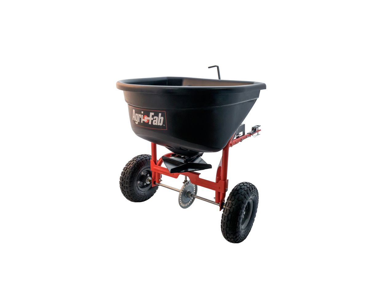 The Agri-Fab 45-0527 towed broadcast spreader will spread everything from fertiliser to seed, rock salt to ice melt. It features a durable poly hopper, coated components and long lasting stainless steel closure plates which resist corrosion. The positive over-centre flow adjustment ensures accurate calibration.