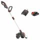 Weighing a mere 2.35kg and equipped with an aluminium, telescopic shaft and ergonomically-adjustable auxiliary handle, this strimmer is a highly portable, easy-to-use helper for every gardener. The flexible, swivelling line head with a 33cm cutting width, and the plant guard ensure precise trimming along lawn edges, under bushes, and against walls. A foldable edging wheel is also included.