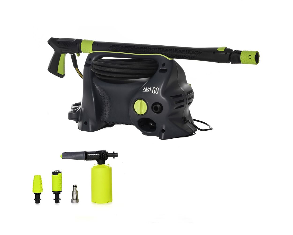 Despite its small size, you’ll find plenty of room to store your accessories. The GO packs the same punch as many larger machinesa great high-pressure washer in a small package! A high-quality steel reinforced hose and AVA's award-winning zoom lance is included with each AVA GO.