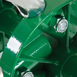 The standard 122cm (48") modular unit easily configures down to 61cm (24") and features interchangeable parts. Each AET48 unit is equipped with four tine stars with six tines each which core up to 8cm deep. The aerator can be configured up to 72" wide with the optional AET expansion kit.