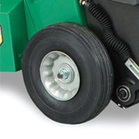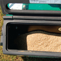 The 11.3kg (25lb) capacity front mounted poly seed box won’t rust or dent. On board instructions are conveniently mounted under the lid to help set seed drop rates. Premier wheels, bale, frame and bearings offer long life and durability.