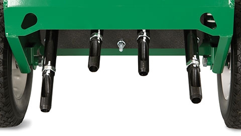 Cam-Driven AeratorsPunches tine core depths to 7cm even in hard soil conditions. Spring loaded rotor assist for aggressive forward motion of the tine rods. |