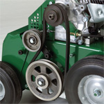 Premium steel pulleys, easy to adjust idler and easy to change beltProtected by a steel guard, these contribute to simple maintenance and long life |