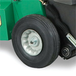 The infinite height adjustment allows precise depth adjustment from 0.3cm to 1.3cm and longer blade life than preset adjustments. Heavy-duty wheels featuring a steel rim and roller bearings withstand the most demanding applications. As the machine weighs slightly more than other power rakes on the market, the Billy Goat PR551V absorbs much of the vibration before it is transferred to the handle, which improves operator comfort and handling.