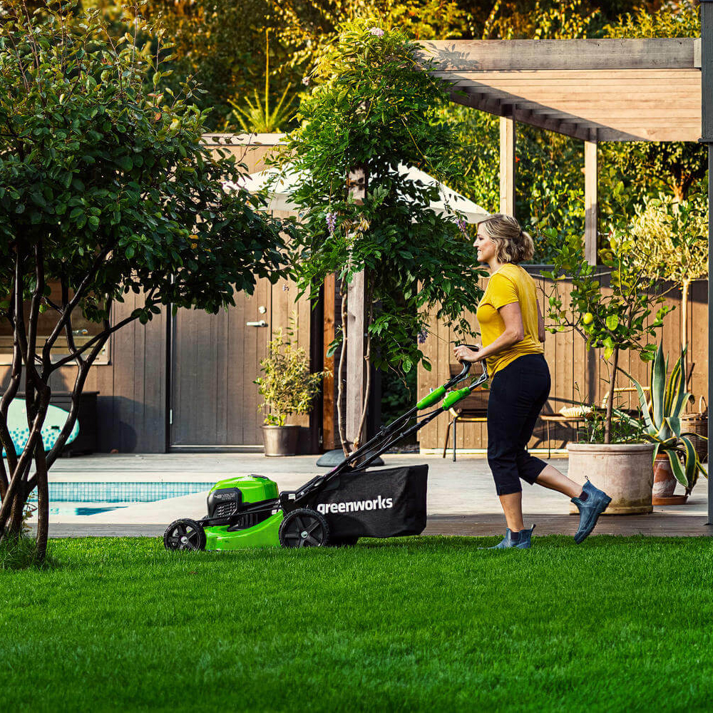 Self-propelled lawn mowers do not require pushing to function. The forward, self-propelling motion of the mower is achieved via a gearbox driven from the engine.This type of lawn mower is a good choice for larger gardens or gardens with an inclined slope, as all the hard work is done for you.