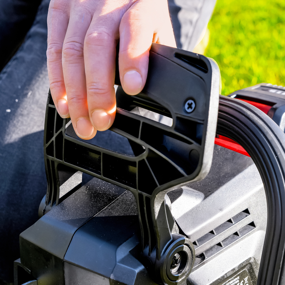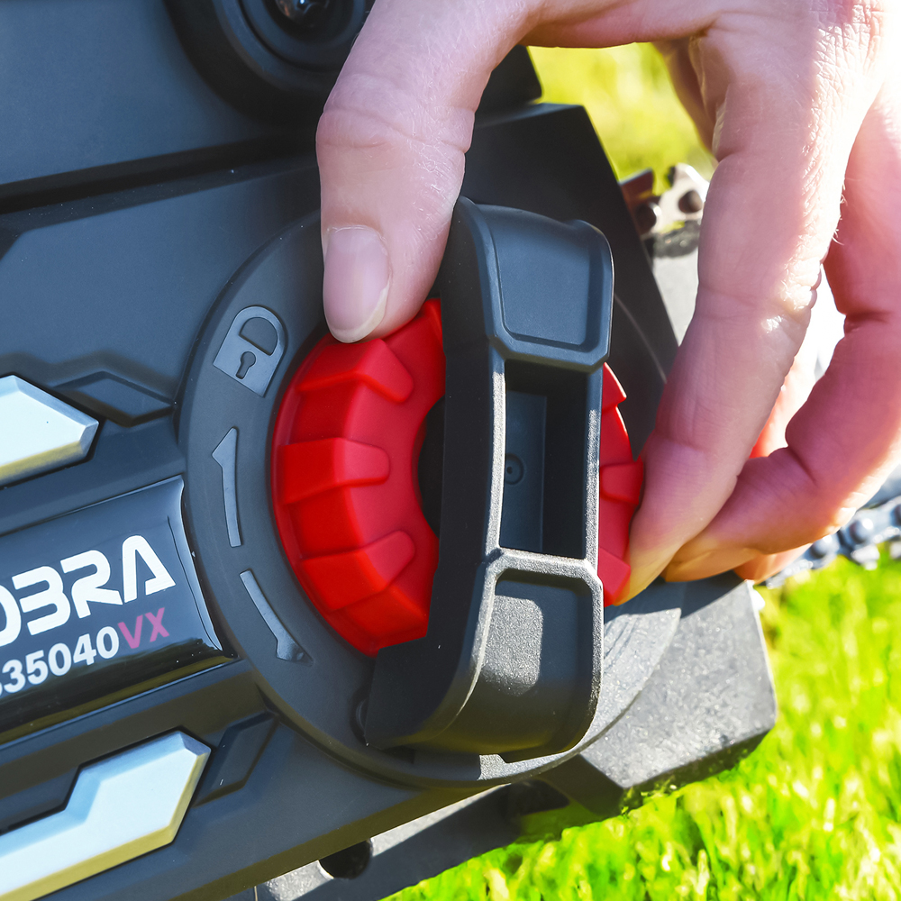 Ergonomic controlsThe ergonomic operator controls on the Cobra CS35040VX are thoughtfully designed to maximise user comfort, control, and safety. With intuitively placed handles and controls, this chainsaw offers precise operation and a confident grip, even during more demanding cutting tasks. Whether you're pruning branches, cutting firewood, or felling small trees, the well-balanced design helps reduce arm fatigue and improves handling, making the CS35040VX comfortable to use. |