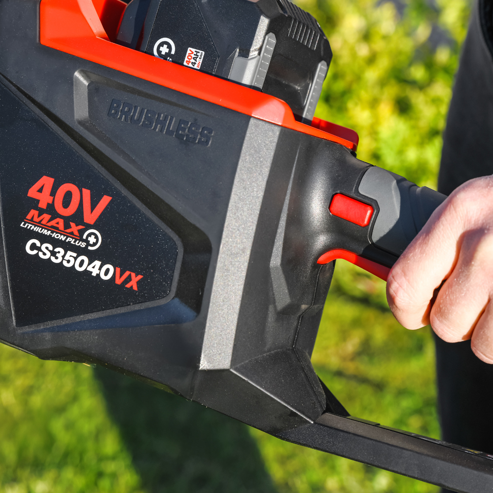 Fitted with a high quality 35cm (14") Oregon bar and chain, the CS35040VX is ideal for felling small trees, pruning branches, and cutting firewood with confidence. The chain speed of 14m/s ensures fast, efficient cutting, while the tool-less chain tensioning system makes on-the-go adjustments simple and hassle-free.