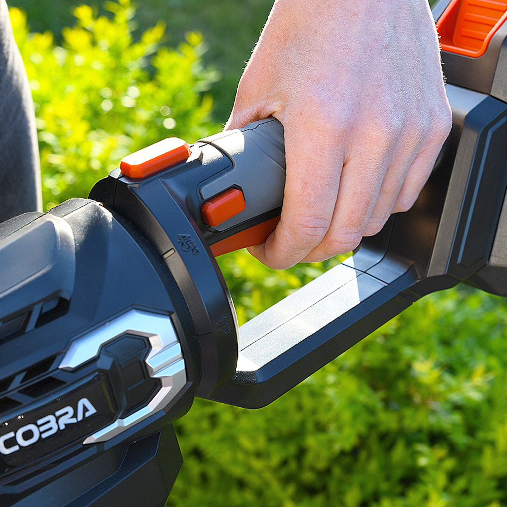 Rotating handleThe rotating handle on the Cobra HT55040VX adds a new level of comfort and control, especially when tackling vertical or awkwardly angled cuts. With a simple adjustment, the handle can be rotated to multiple positions, allowing you to maintain a natural wrist and arm alignment whether you're trimming the sides or tops of hedges. This not only improves cutting accuracy but also reduces strain on your arms and shoulders, making it ideal for extended use. |
