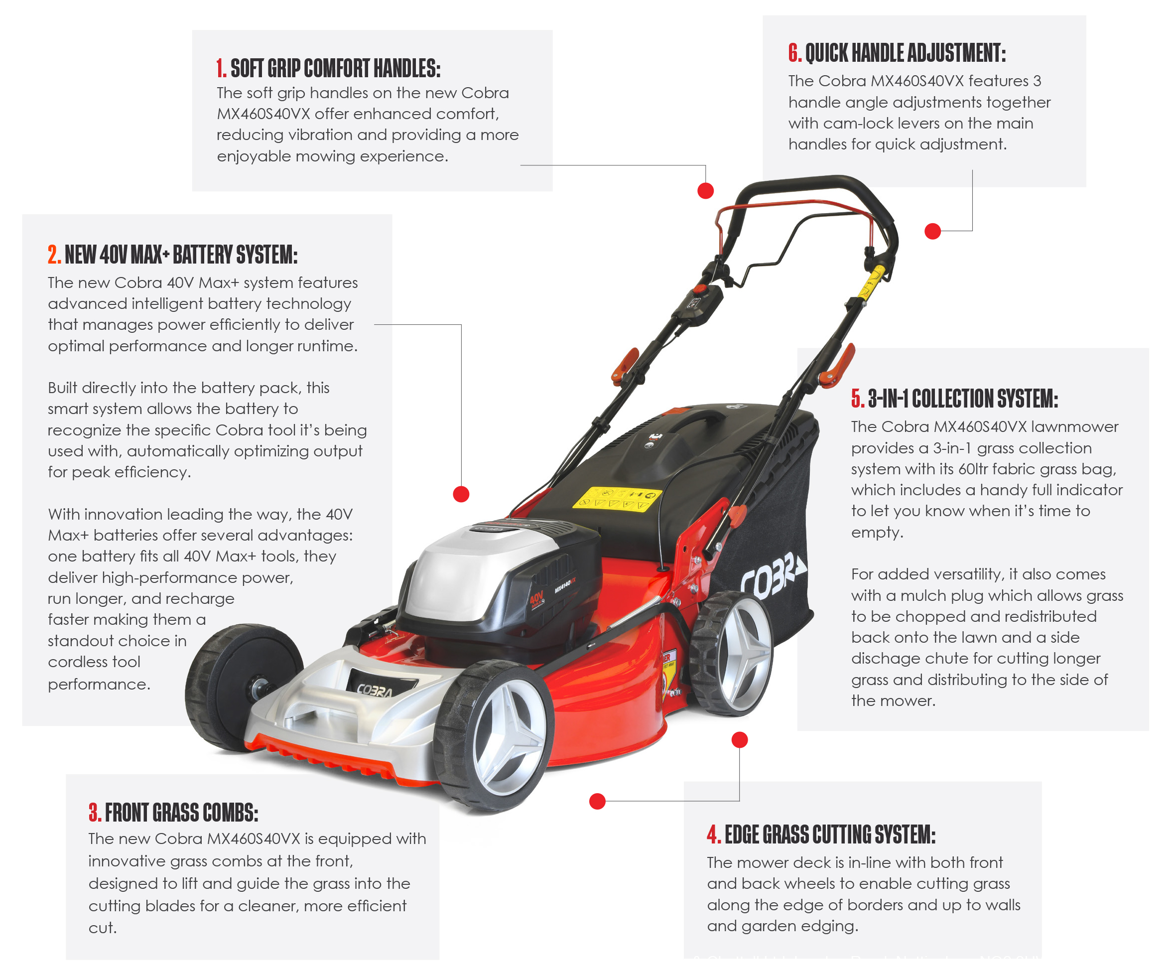 Cobra’s 40V cordless machines have evolved .... introducing the 40V MAX+ lithium-ion battery system, the ultimate solution for power, convenience and eco-friendly gardening.