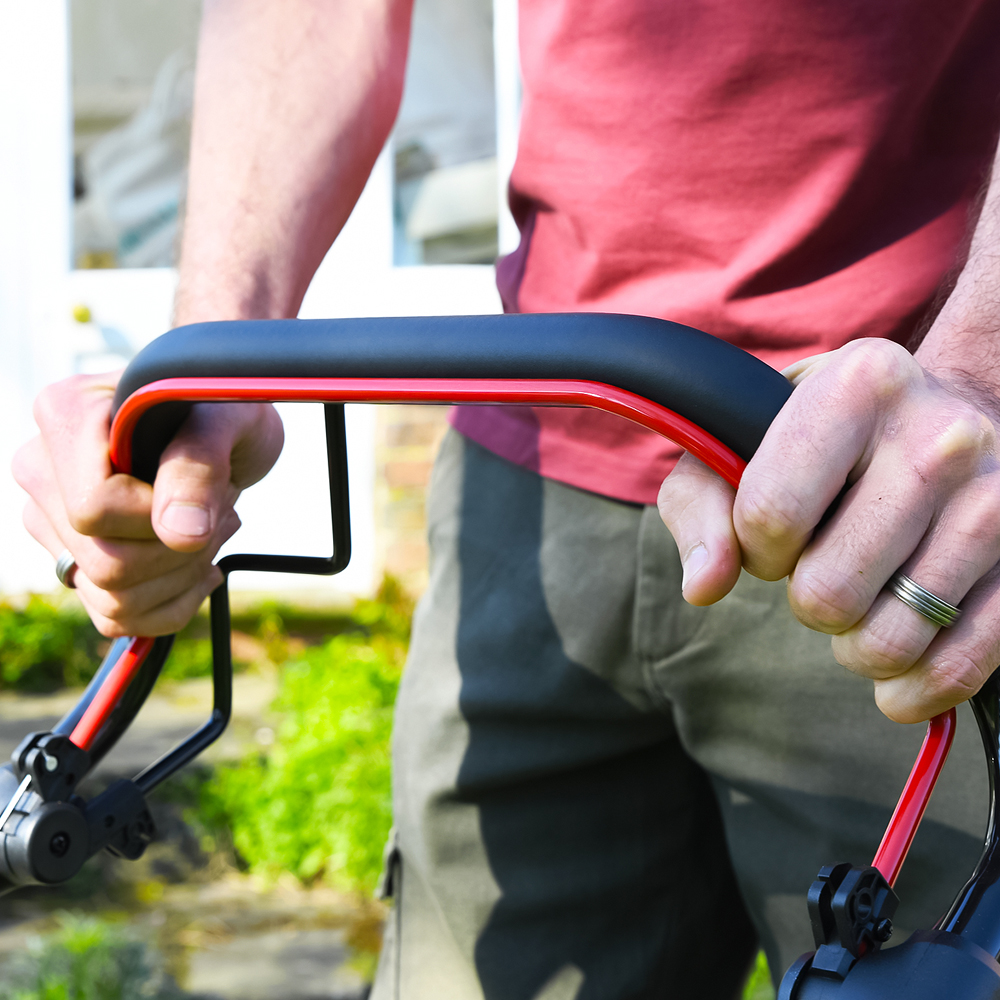 Handle angle adjustmentThe Cobra MX460S40VX is thoughtfully designed with user comfort in mind, featuring three adjustable handle angle settings. This allows operators of all heights to customise the handle position to suit their individual needs, ensuring a more comfortable and ergonomic mowing posture. Additionally, the soft-grip handles provide enhanced comfort by reducing vibration and hand fatigue, resulting in a smoother, more controlled operation. |