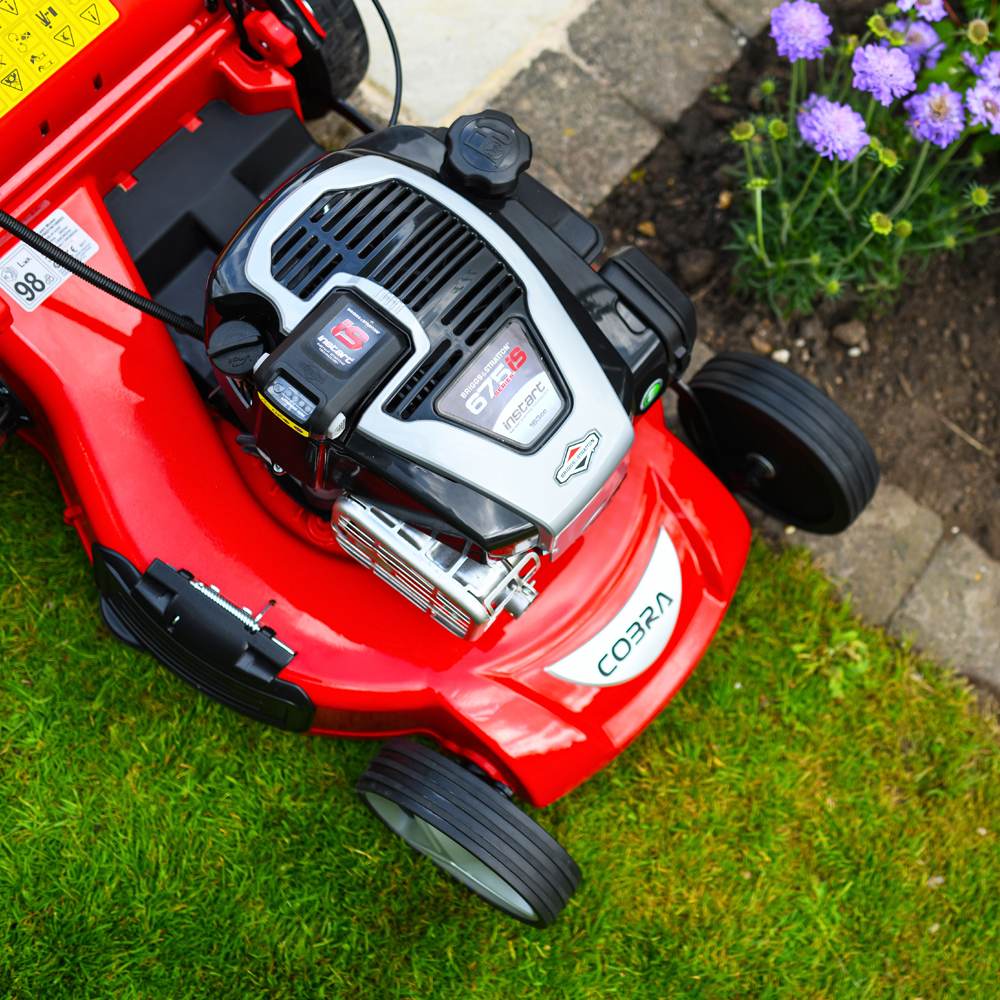 This lawn mower easily earns its place in Cobra's premium range of petrol lawn mowers thanks to its electric starting engine, robust aluminium deck, effortless self-propelled drive and five speed gearbox.