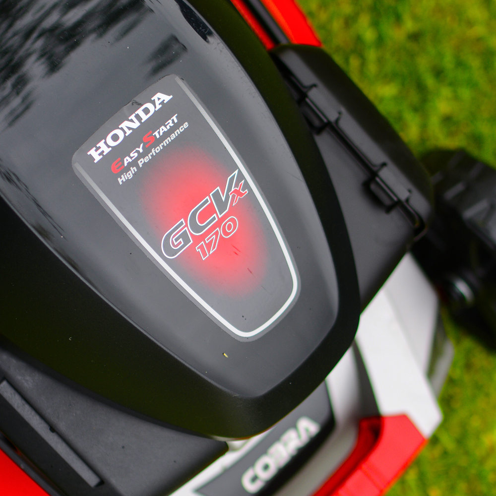 Powered by Honda173cc GCVX170 engineThe Honda GCVX170 'Easy Start' petrol engine offers a quiet, yet powerful and lightweight combination for a variety of demanding applications. The Honda GCVX170 engine powers Cobra lawn mowers for medium to large gardens. |