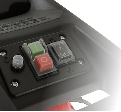 The controls are ergonomically located to make operation more comfortable and safe. For increased safety, a switch automatically cuts the motor if the collection box is removed.