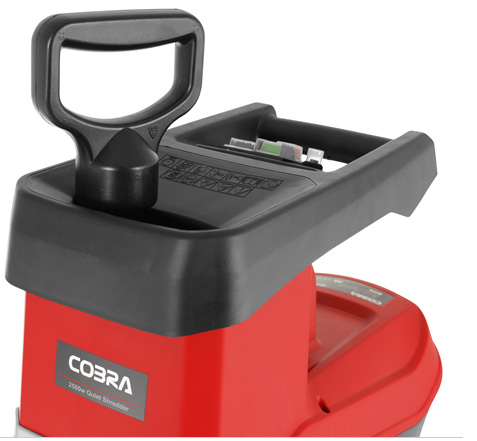Powered by a 2500 watt motor, the Cobra QS2500 features a drum gear shredding system and is capable of dealing with branches up to 40mm in diameter. Its auto-feed function takes the effort out of processing material, whilst a practical plunger is included for increased throughput on heavier loads. Debris is collected in a large 50 litre collection box.