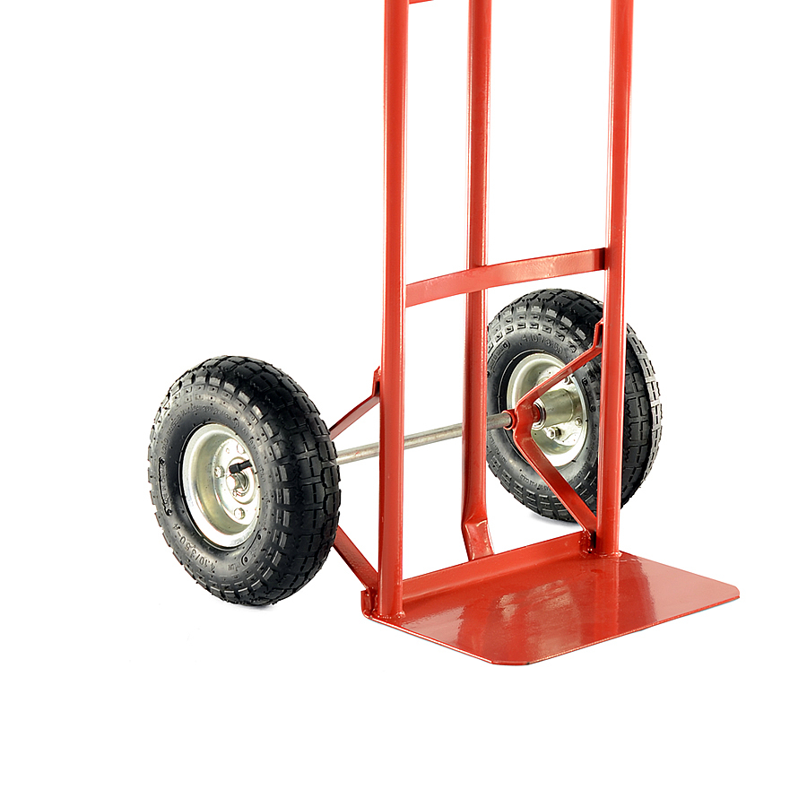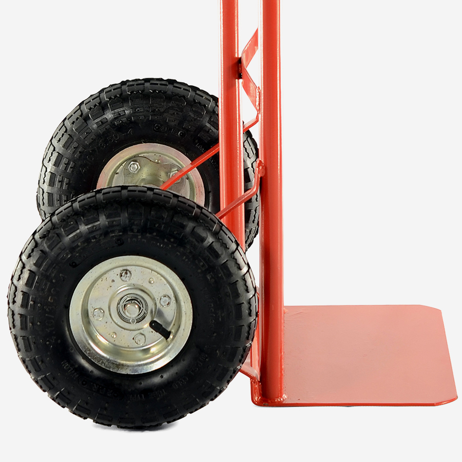 The Cobra ST200 sack trolley comes equipped with pneumatic tyres. Pneumatic tyres are made from two parts, the outer part is made from tough rubber with tyre treads and the second part is an inner tube filled with air placed inside the outer piece.