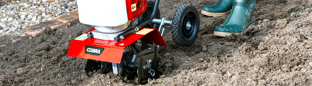Cobra has broken new ground with this lightweight and compact petrol mini tiller, designed to make small-scale domestic tilling and cultivation tasks somewhat less of a chore. Its narrow 23.5cm (10") working width makes it ideal for turning over the soil between existing crop rows with ease, yet wide enough to prepare the ground for planting.