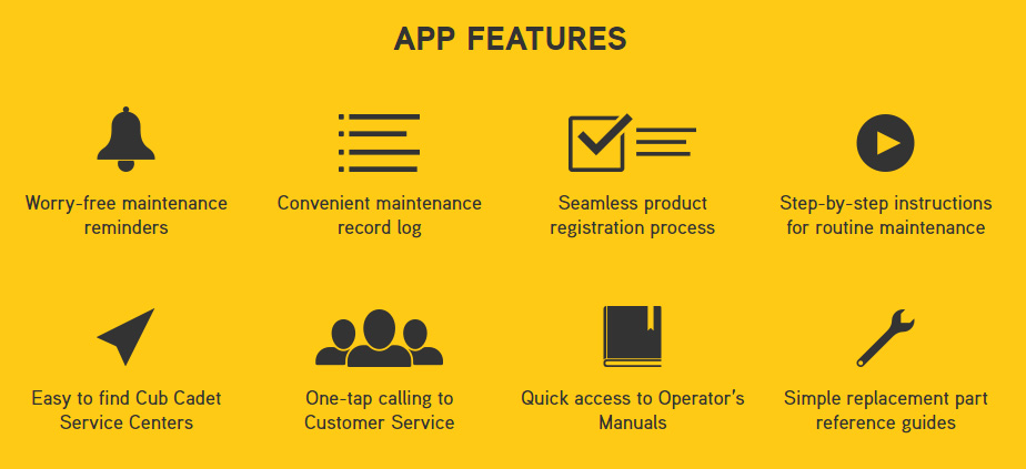 Cub Connect Blue Tooth AppSmartphone App keeps a track of inspections and servicing.