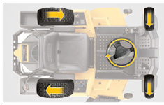 Pneuamtic Front Caster Wheels Controllable pneumatic front castor wheels support the zero-turn of your Z-FORCE. |
