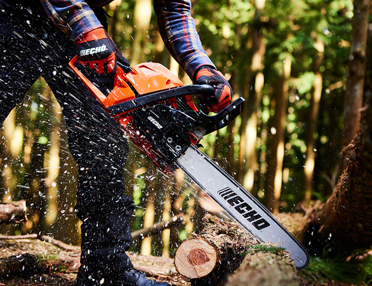 Echo's range of low-vibration, high-performance rear handle and top handle petrol chainsaws are used by professionals, farmers and homeowners for pruning, logging and tree felling.