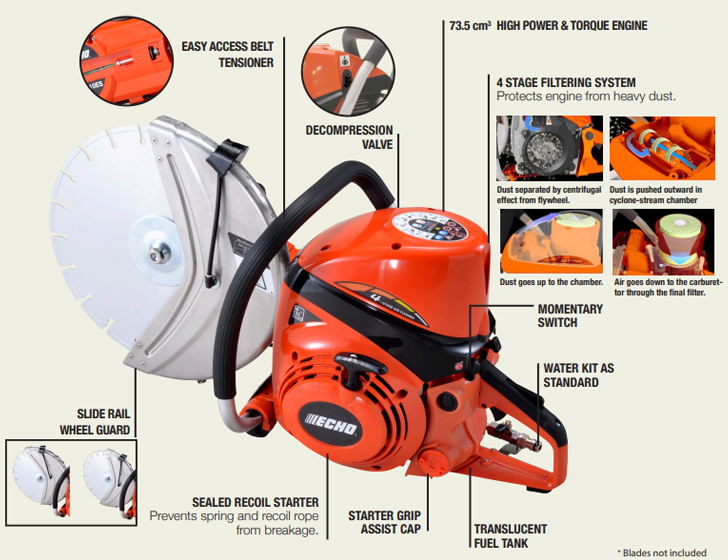 The Echo CSG-7410ES cut-off saw has the highest cutting torque in its class to achieve acceptional performance and tackle tough concrete and metal cutting jobs.