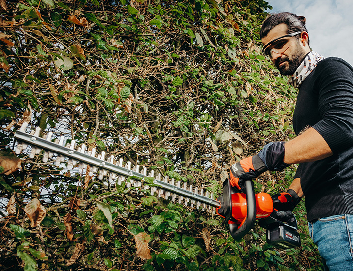 The DHC-310 is equipped with a long 604mm (24") double-sided blade to increase your productivity, with triple-sharpened cutting teeth for a perfect cut at the first pass. The hedge trimmer has a cutting capacity of up to 26mm diameter.