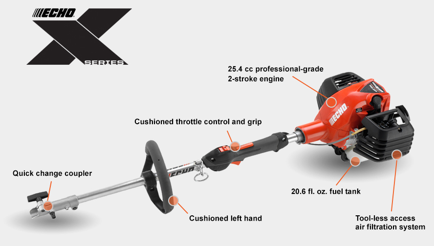 Echo X-SeriesX-Series means Echo’s best in class products. More power, lighter weight and performance that will noticeably increase your productivity. Designed for professionals who demand the best and highest quality tools. Best-in-class featuresEach model has specific, best-in-class features that are designed to help green space professionals perform their jobs better in their respective applications. Being light weight and more powerful with features like vibration reduction and longer run times all contribute to getting one job done faster and moving onto the next. Withstand tough conditionsEcho X-Series equipment is so extreme, that only the hardest working and committed can challenge the limits of its capabilities. The equipment is tested in extreme conditions to assure easy starting and smooth operation, whatever the environment. |