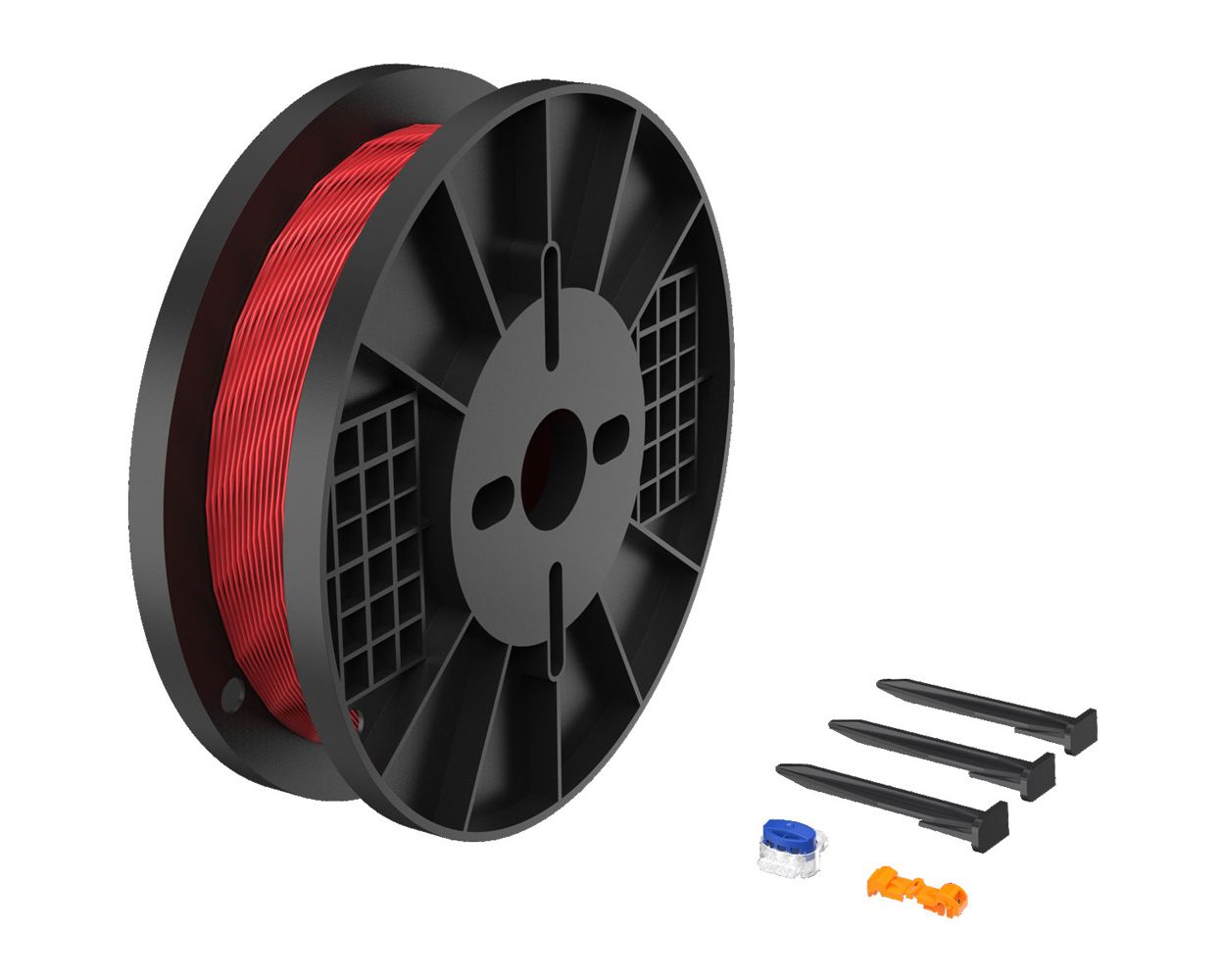 Small installation kit with 150 metre 3.4mm boundary wire for robotic lawn mowers. Includes 300 stakes, 3 connectors and 2 couplers.
