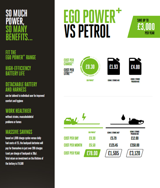 Compatible with every tool, including EGO's new commercial range, the new detatchable harness and adapter means any EGO Power+ battery can be used to power all EGO tools.