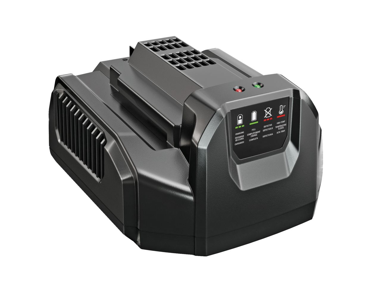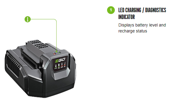 Compatible with all batteries in the EGO Power+ garden equipment range, this 56 volt lithium-ion infinity charger features fan cooled charging system, fuel gauge and LED indicator lights.