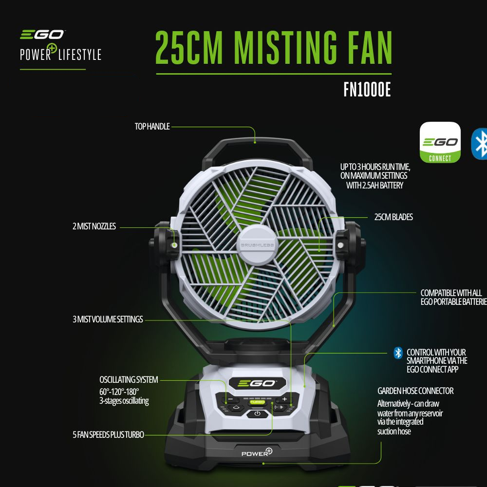 EGO Power+ FN1000E-K1252 25cm 56V Cordless Misting Fan (with 2.5Ah Battery & Charger)Special Price £399.00 (inc VAT) Regular Price £409.00 (inc VAT)