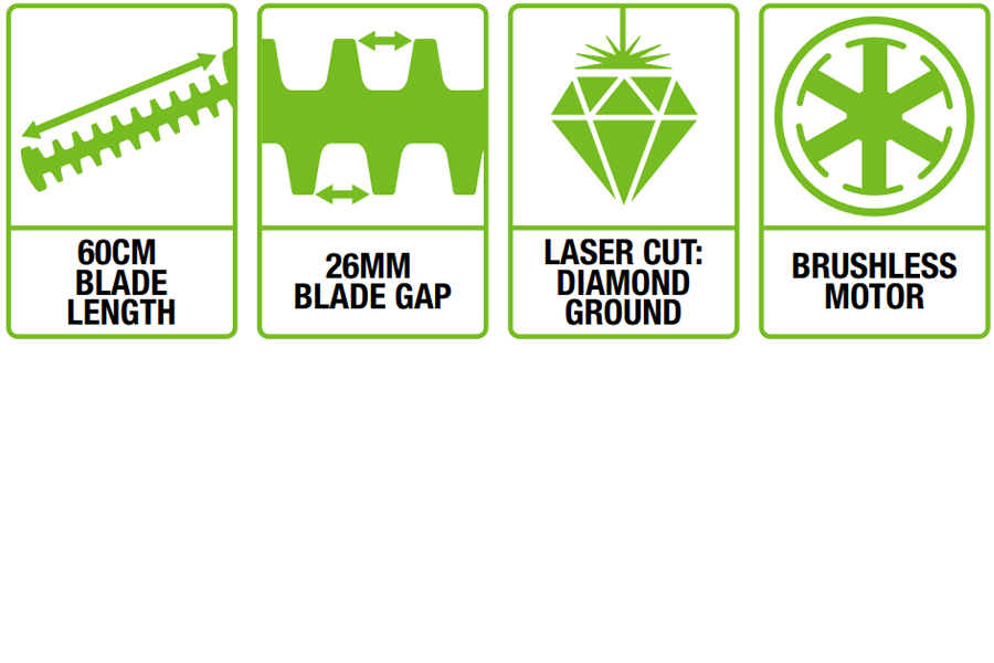 Connected to a petrol-matching 56 volt Arc lithium-ion battery, a single charge will deliver impressive run times so you'll be amazed at how much hedge you can cut.
