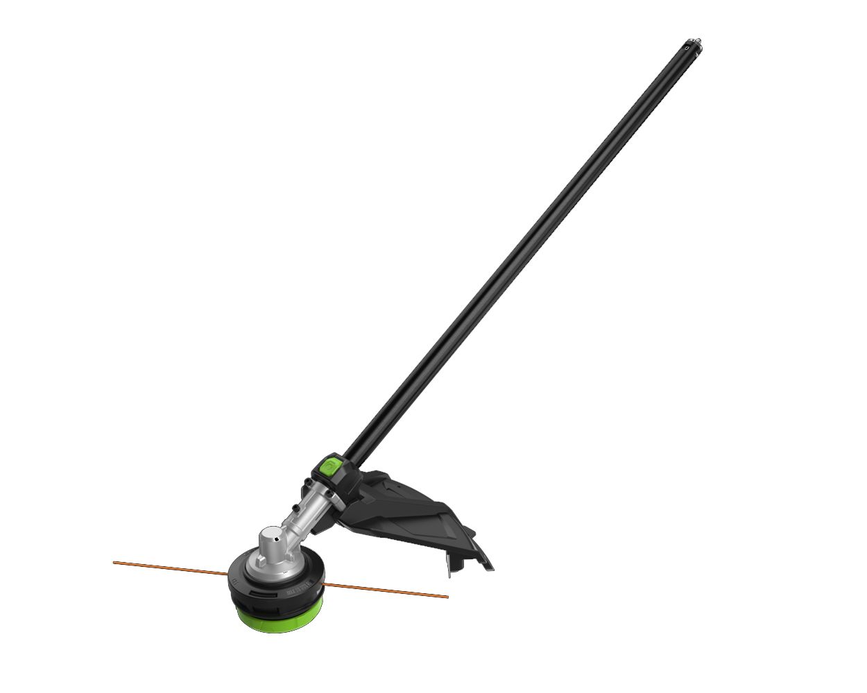 Part of EGO's 56 volt cordless multi tool system, the unit comprises a carbon fibre straight shaft fitted with Powerload™ bump feed dual nylon line head.