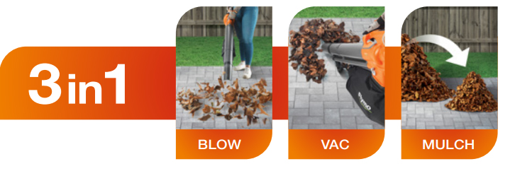 Breeze through leaves and take the challenge out of garden clearance. The 18V Flymo EasiBlowVac is a versatile, 3-in-1 powerful cordless garden blower and vacuum with a built-in metal mulcher that reduces leaves to a fine mulch so you can collect more before emptying.