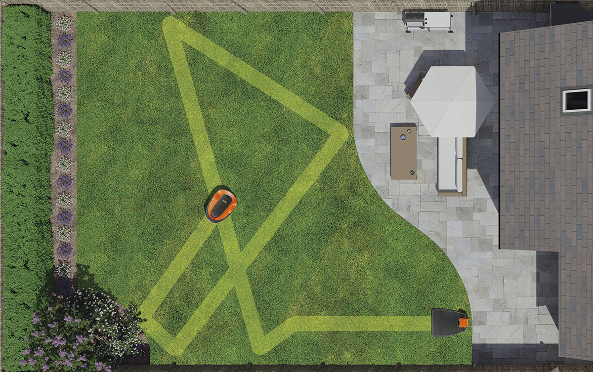 The charging station can be placed virtually anywhere around the edge of the lawn - even in corners, and the guide wire lets you set multiple start points and optimises navigation to and from the charge station preventing track marks and ensuring every corner of the lawn is cut.