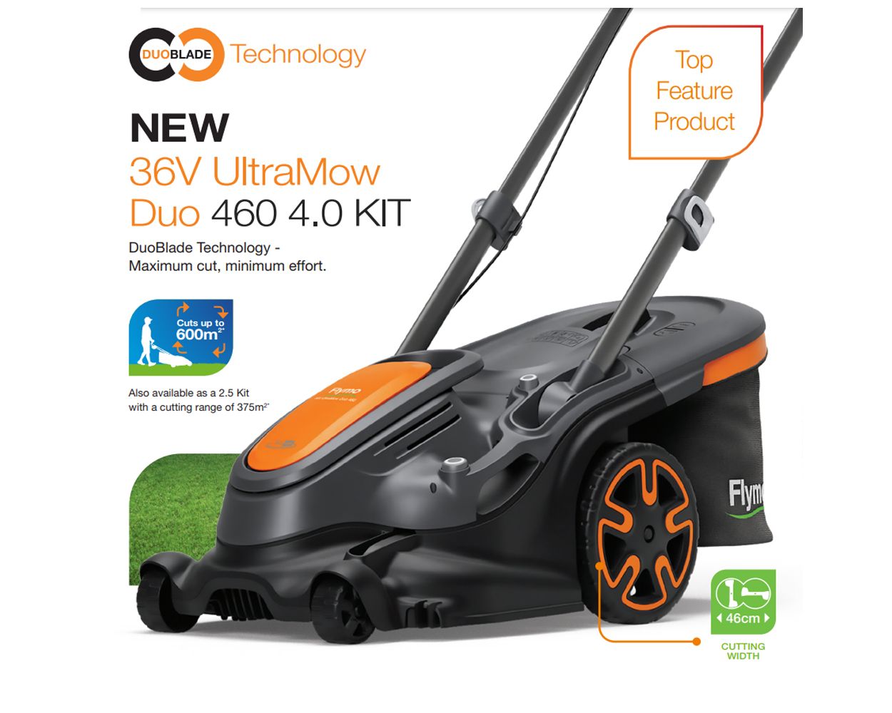 Discover the Flymo 36V UltraMow Duo 460 and join a new revolution in lawn mowing.