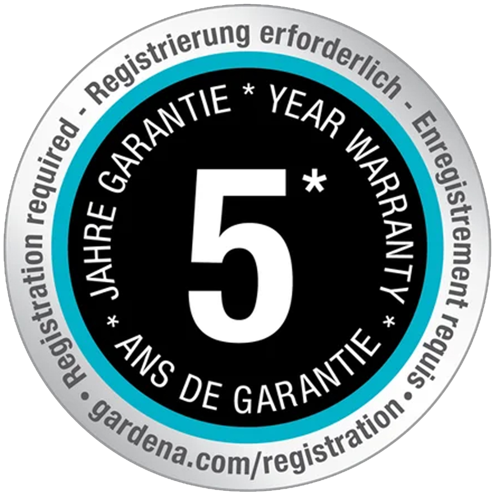 5 year Gardena warrantyThis product is backed by a five year manufacturer's warranty (subject to registration at gardena.com/registration within 3 months of purchase). |