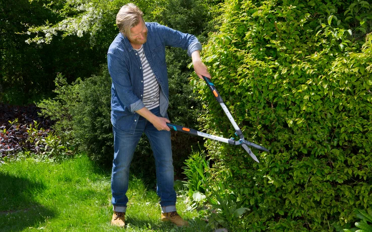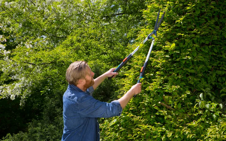 Gardena's TeleCut hedge clippers, with a clever telescopic function, become your extended arm for cutting hedges and shrubs.