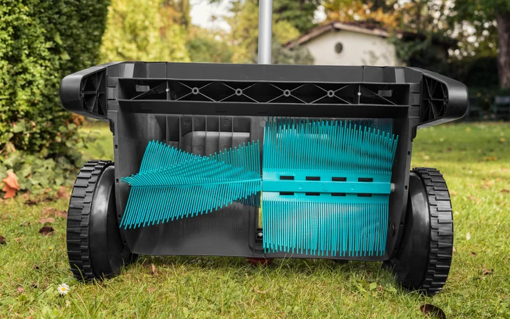 All leaves on the ground can be collected reliably thanks to the sophisticated system of brushes – almost without any noise, as everything is powered by your hand without the need for an engine. That way you save energy and make a conscious decision in favour of sustainability. The leaf and grass collector is also suitable for collecting grass clippings and scarifying material. With the easy height adjustment for adaptation to the ground everything can be collecterd with ease. Working in your garden is really fun!