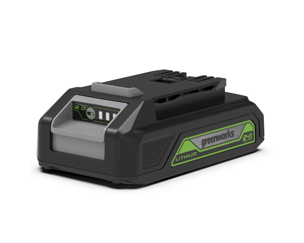 The GreenWorks G24B2 is a robust, lightweight 24V 2Ah lithium-ion battery. Featuring the latest lithium-ion technology and integrated LED power indicator clearly showing the power level and when charging is required. Compatible with all 24V garden and power tools for total convenience.