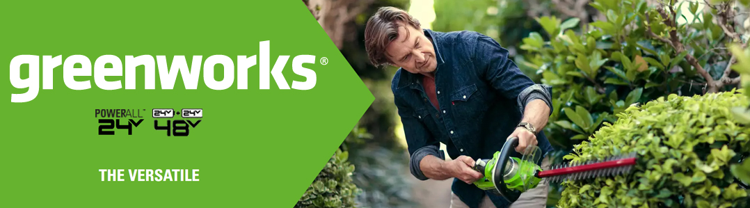 As part of the Greenworks 24V family, the interchangeable battery system can be used in a range of different tools, from lawn mowers, hedge trimmers, chainsaws and even power tools.