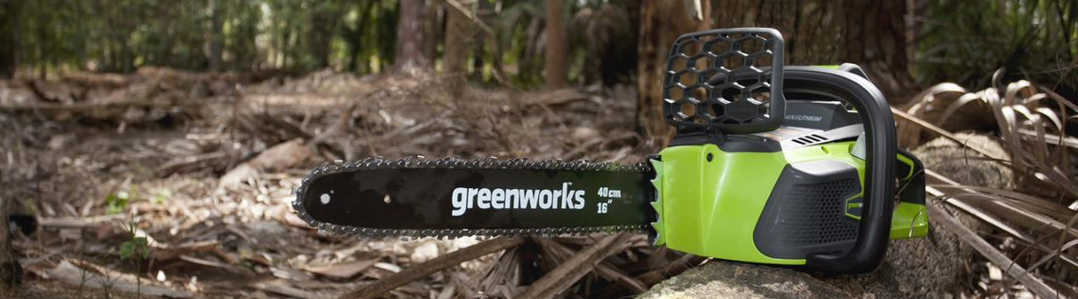All GreenWorks cordless chainsaws and pruners start first time, every time. There is no cord to cut or get in the way. They run much quieter than a petrol saw and of course, there are no nasty emissions.