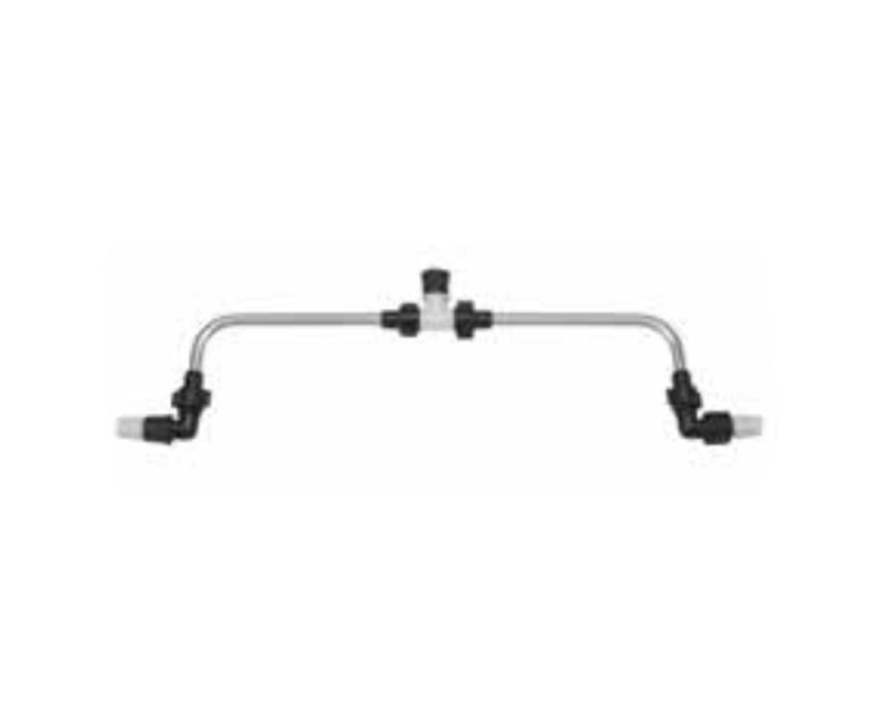 A spray boom that splits the delivery between two nozzles spaced 400mm apart.