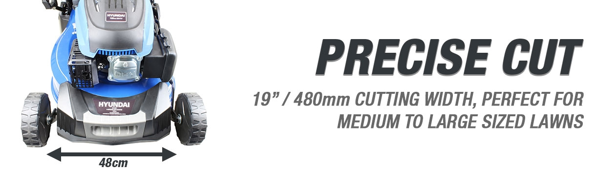 The HYM480SPR is a superb self-propelled petrol rotary lawn mower from Hyundai featuring a rugged 48cm steel deck and rear roller for mowing stripes into your lawn.