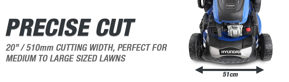 The cutting width of 51cm is ideal for medium to large size lawns and gardens. The cutting height can be adjusted to six positions with a single height adjusting lever, ranging from 25mm to 75mm.