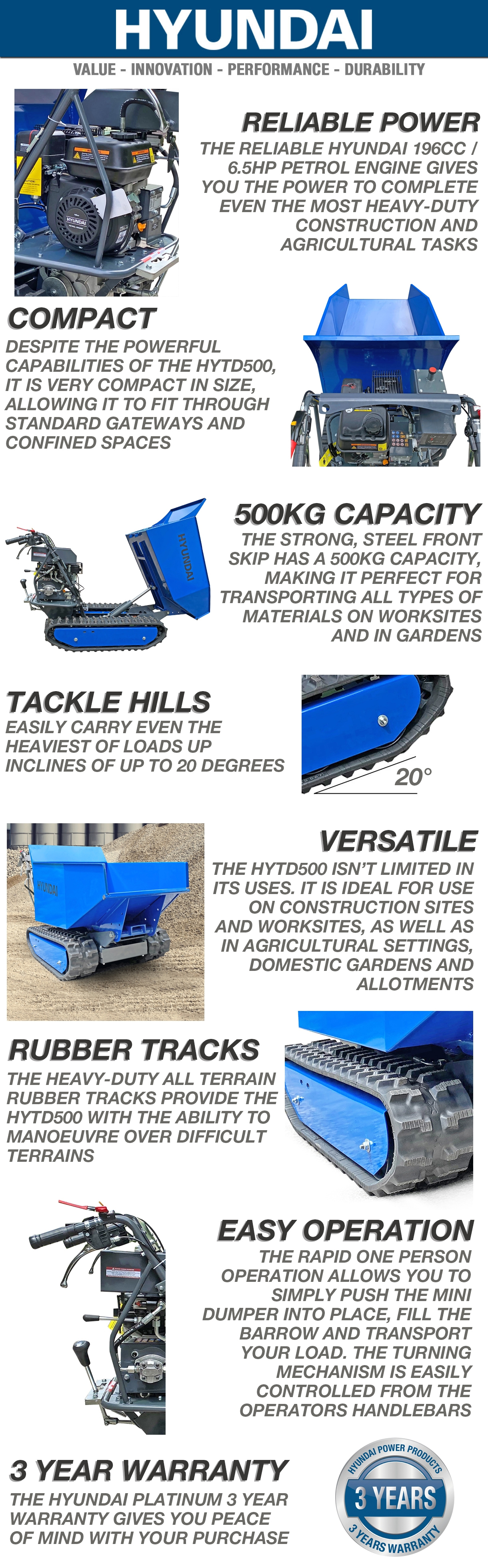 Hyundai HYTD300 300kg Tracked Power Barrow / Mini Dumper / TransporterAs low as £1,699.00 (inc VAT) -